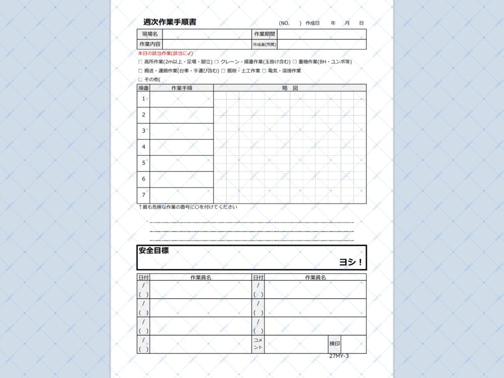 総イラスト数 2583種類です(2026.3.26現在) 2023.09.03 スポンサーリンク お知らせ セットで揃えたい方向けに有料販売始めました!👉 【有料用】BOOTH特設用ページはコチラ SNSやっております! Instagram TikTok 新着のイラスト <書式>週次作業手順書 ハンドリフト使用横面A2ハーネス・ヘルメット付 ハンドリフト使用横面A2ハーネス付 ハンドリフト使用横面A2ヘルメット着 ハンドリフト使用横面A2 ハンドリフト使用横面A1ハーネス・ヘルメット付 ハンドリフト使用横面A1ハーネス付 ハンドリフト使用横面A1ヘルメット着 ハンドリフト使用横面A1 上げたハンドリフト横Aを押す作業員横(グレー) ハンドリフト横Aを押す作業員横(グレー) 鉄筋パイプ馬で手を挟む危険 イラストをもっと見る 新着の記事 現場で使える週次作業手順書の作り方|1週間用現地KYに使用できる(テンプレ付き) 新入社員へ最初に知っておくと楽になる5つの心構え ツナフォトは組み合わせ次第でもっと自由に!イラストを組み合わせて現場の図を作る 記事をもっと見る 人気のイラスト フック(正面) 2023.11.112024.09.11 チェーンブロック正面(ノーマル) 2023.10.202025.05.30 エンドストッパー表面2本(610)枠付定規付 2024.07.172024.07.18 チェーンブロック正面(カスタマイズ用)ノーマル 2023.10.212025.05.30 誘導棒(紫) 2024.02.232026.01.12