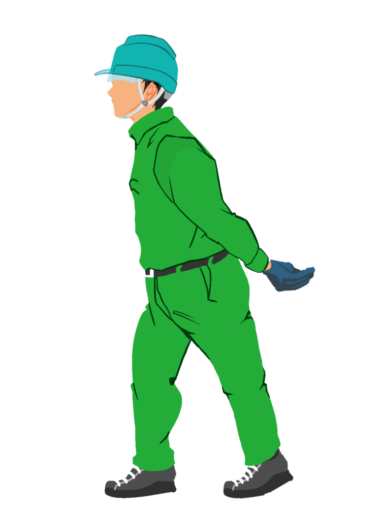 後ろ担ぐ横面ヘルメット着 イラストヘルメット着 2026.01.14 スポンサーリンク (グレー) (青) (緑) (赤) (茶) (紫) (桃) (橙) (黄) (グレー+青) 2433~2442.後ろ担ぐ作業員1横面ヘルメット着のイラストです。 単管などの仮設材や重量物を、後ろに手を添えて運搬する作業ポーズです。 関連イラスト ヘルメット横色まとめ1 フラットパネル表・裏・横面定規付 フェンス用コンクリートブロック正面 ステップキューブ(オリオン黄) 戻る 2026/1/14公開