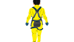 ネコ台車を押す作業員1(黄)後面ハーネス付