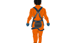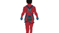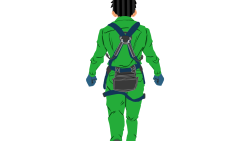 ネコ台車を押す作業員1(グレー+青)後面ハーネス付