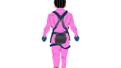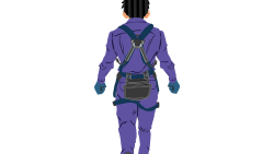 ネコ台車を押す作業員1(紫)後面ハーネス付