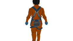 ネコ台車を押す作業員1(茶)後面ハーネス付