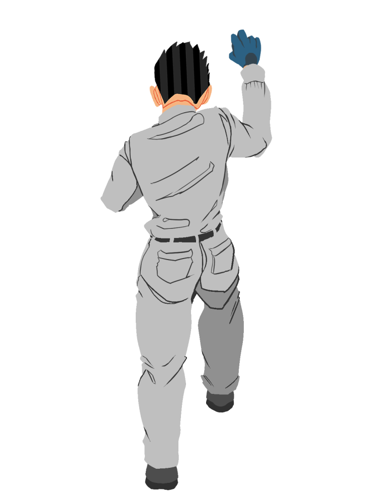 1550~1559.梯子登る後ろ姿作業員1背面のイラストです。