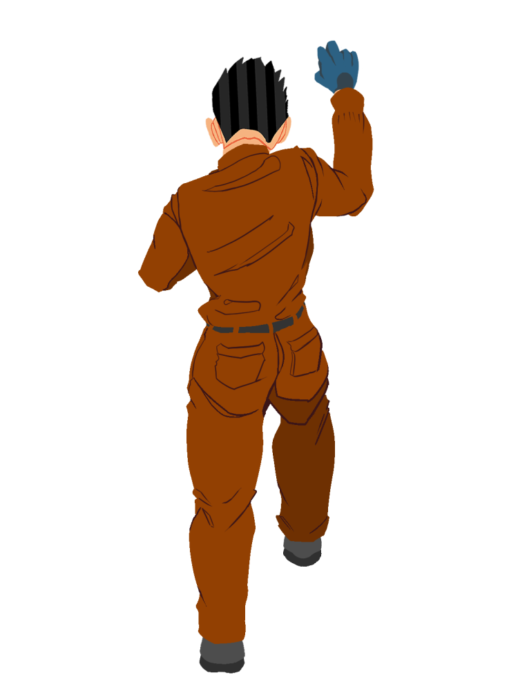 イラスト1550~1559.梯子登る後ろ姿作業員1背面のイラストです。