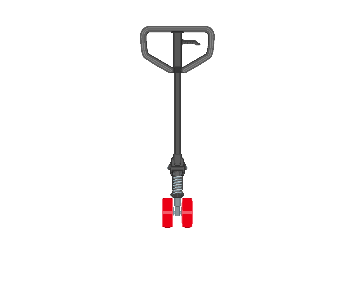 ハンドパレットの操作に使用されるハンドル部分のイラストです。前進・後退や荷役作業を行う場面の表現に適しており、倉庫や工場での作業イメージを補足する図解に活用できます。本体と組み合わせて使用することで、より実用的な構成が可能です。