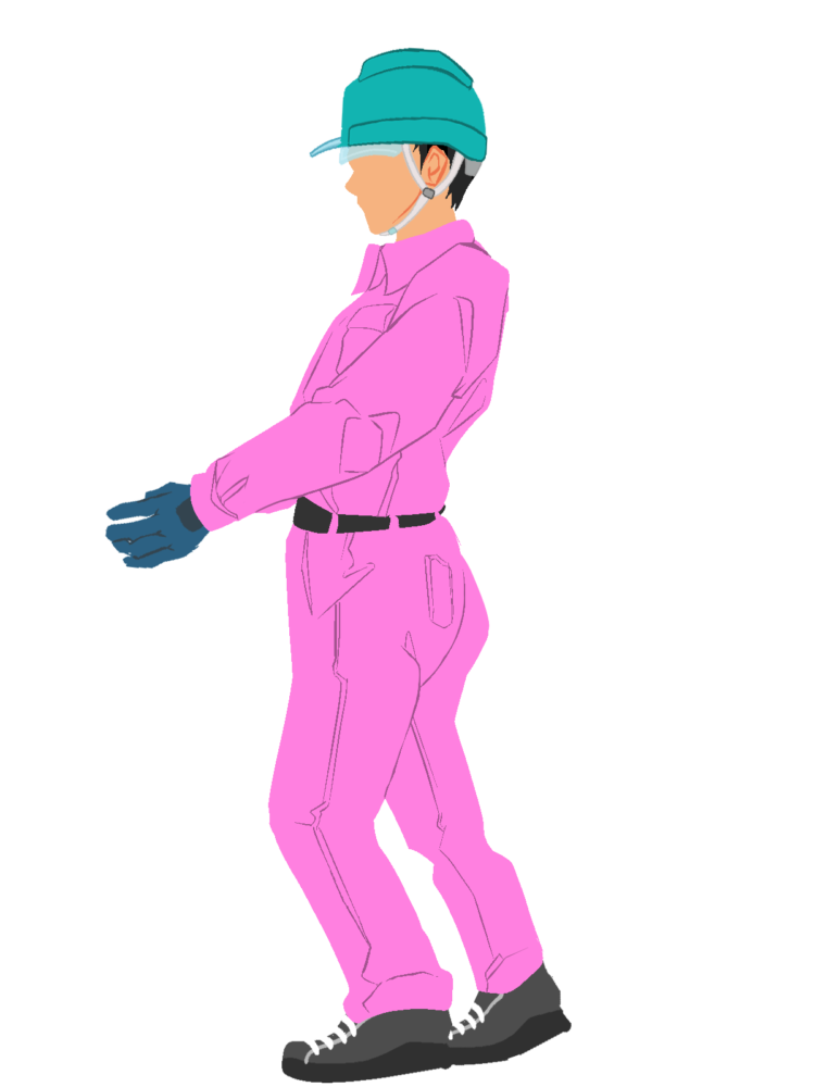 894.物を持つ横作業員1横(桃)ヘルメット着のイラストです。