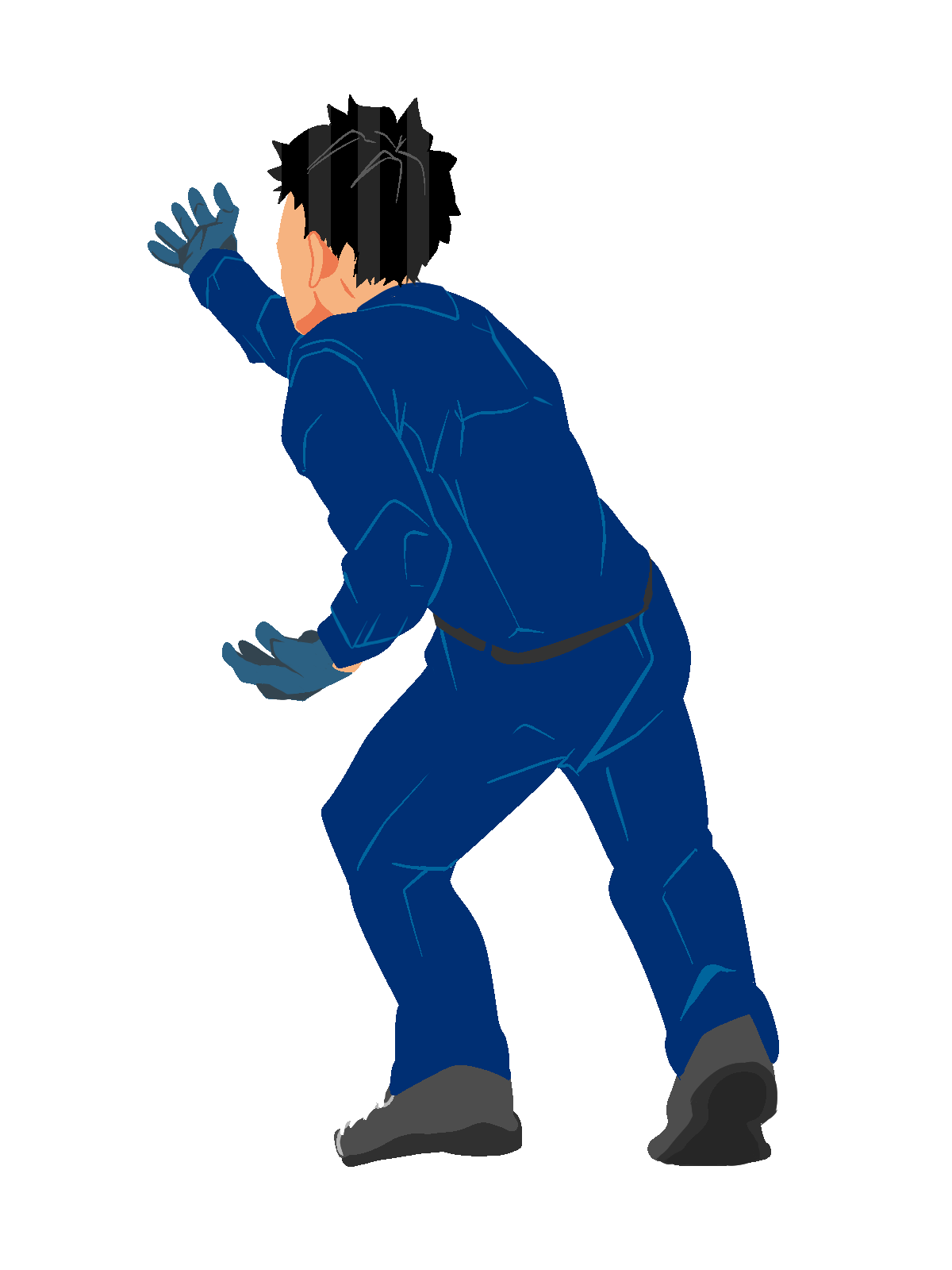 654.物を押し上げる作業員1(青)のイラストです。