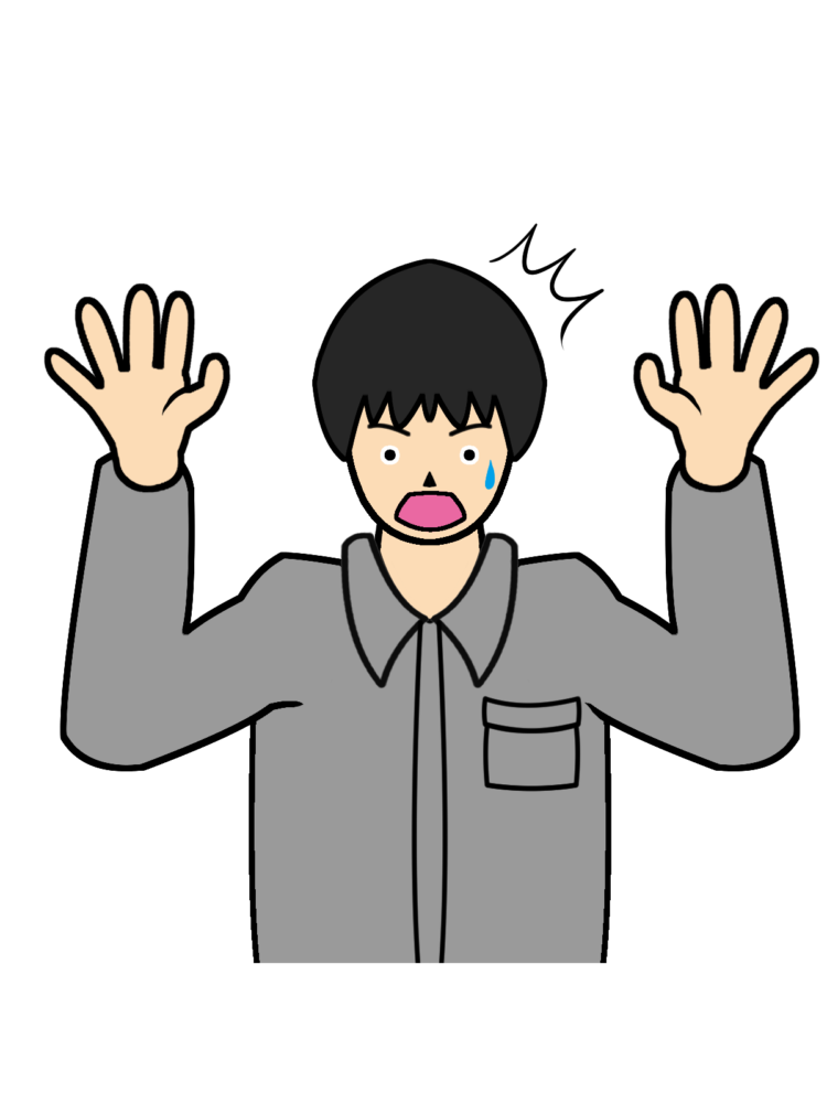 驚く作業員男性のイラストです。
