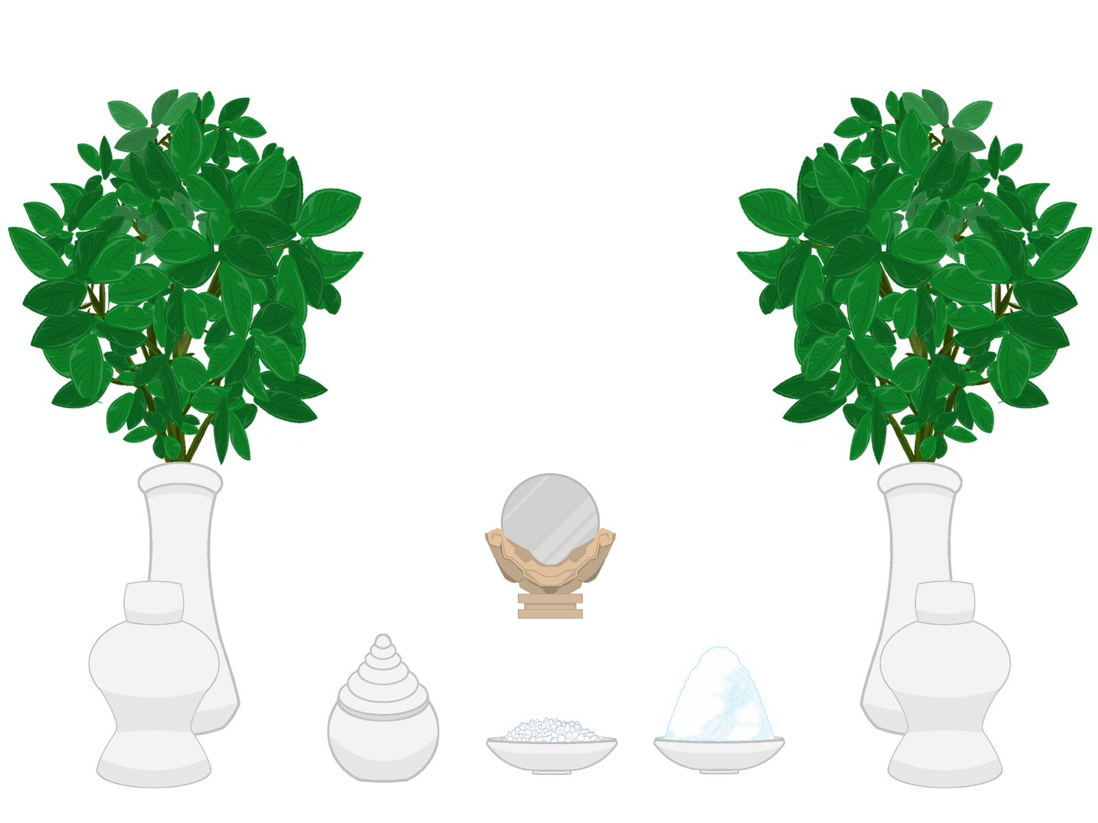 神棚飾り(榊付) イラスト神棚飾り(榊付) 2024.01.02 スポンサーリンク 1051.神棚飾り(榊付)のイラストです。 水・米・塩・酒・榊などをそろえます。年末や月の切り替わりなどのタイミングで整え直す家庭や職場が多く、日々の入れ替えや定期的な手入れを通して棚を整った状態にしておくという生活的な慣わしが続いています。 関連イラスト 門松 羽子板セット 鏡餅フルセット 神棚(飾り一群榊付) 戻る 2024/1/2公開