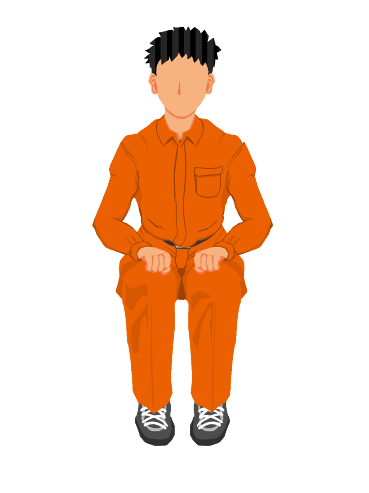 1352.座る作業員1正面A(橙)のイラストです。