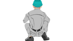 しゃがむ作業員背面1(グレー)ヘルメット着