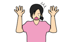 驚くTシャツ女性