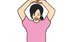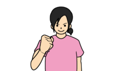ガッツポーズするTシャツ女性