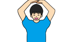 ガッツポーズするTシャツ男性