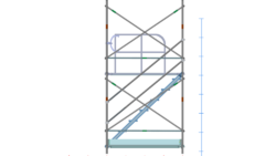 イラスト クサビ式昇降階段足場3600支柱1スパン2層正面巾木階段部のみ階段・手摺・ガード(未展開)付