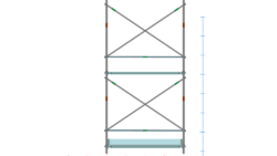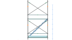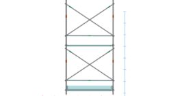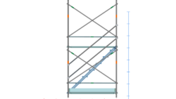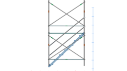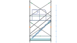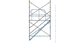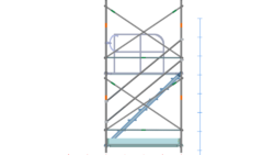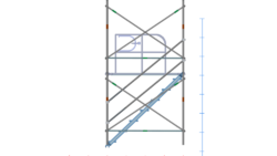 イラスト 枠組昇降階段足場914枠1スパン2層正面階段付・手摺り・ガード(未展開)付2段目以降