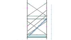 イラスト 枠組昇降階段足場1200枠1スパン2層正面階段付・手摺り・ガード(未展開)付2段目以降