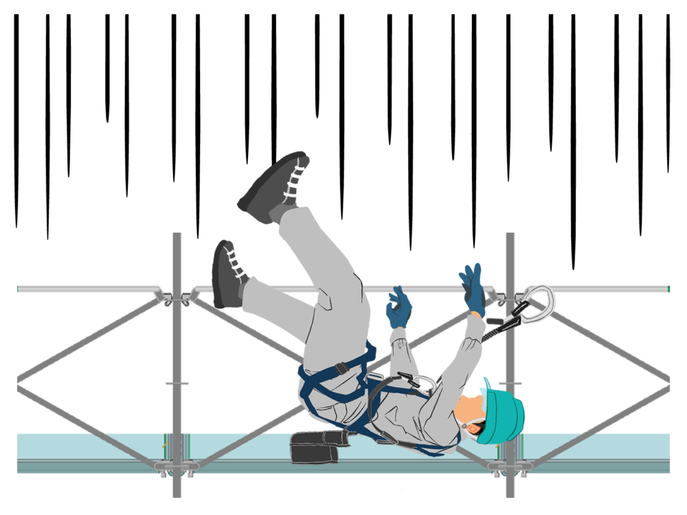 イラスト4016~4017.高所から落下中の作業員1のイラストです。